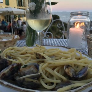 Spaghetti alle vongole is not only a July food, but how delicious enjoyed on a July evening, with a cool Vermentino, by the sea.