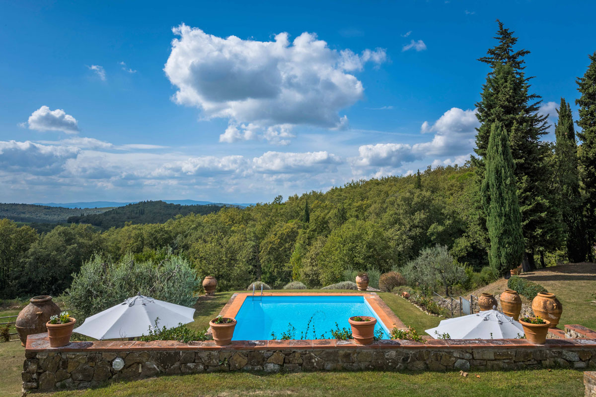 In the heart of Chianti Classico, between Florence and Siena, this villa, owned by long-time friends, sits within thirty acres of woodland, olive groves, and a small, award-winning vineyard.